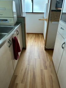 床のフロアタイル張り工事を行いました。